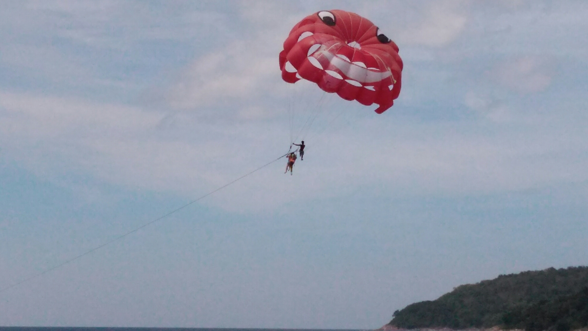 Tag 18: Ich hab schon so viel von Phuket gehört, hauptsächlich nur von Patong, einem der größten Vergnügungsviertel von Südostasien. Karon ist eher das Gegenteil. Nach Mitternacht war es hier wie ausgestorben. Warum? Es gibt keine Partymeile oder Vergnügungsviertel. Ich sah 2 Nebenstraßen (Soys) wo es ein paar zwielichtige Bars gab. Hier habe ich ein Bundesligaspiel angeschaut und Klaus und Gabi kennengelernt, 2 Bier Singha getrunken und Smalltalk mit Klaus hauptsächlich über Fußball gehabt. In Karon hielten sich hauptsächlich Russische Mitmenschen auf. Die meisten waren Familien und Paare. Alles hier verlief superharmonisch. Es gibt ja diese Geschichten über diverse Russen in Ägypten und der Türkei. Dies kann ich für Phuket Karon Beach nicht bestätigen. Also weg mit diesen Vorurteilen und Beurteilungen! Es handelt sich wohl um Pauschaltouristen und Sie bilden die absolute Mehrheit der Touristen. Ich habe auch keine trinkenden Russen am Strand gesehen, nichts. Alles total gesittet. Allgemein betrachtet ist Phuket sehr zugebaut und um an den Flughafen zu gelangen benötigten wir 2 Stunden. Verkehrschaos pur. Es kam mir vor, als ob die halbe Insel zugebaut ist. Und so änhlich ist es tatsächlich auch. Am Tag meiner Abreise checkte ich um 12 Uhr mittags aus, nachdem ich gepackt hatte und genoss die letzten Stunden am Strand, bei einer Thai massage und einem letzten Mittagessen, bevor mich ein Minibus 17 Uhr abholte und zum Flughafen brachte. Am Karon Beach gab es auch Jet-ski Verleih und Parasailing. Was ich hier sah war beeidruckend und ich hätte mich auch kugeln können vor lachen. Sorry. Es ist sehr windig am Karon Beach. Aber Geld geht hier wohl vor Sicherheit. Während die Touristen in diesem Sinne sicher am Fallschirm angebracht waren, kletterte ein Thai durch die Seile des Fallschirms, um den Fallschirm und die Touristen zu stabilisieren. Ich hab mir das ganze für 2 Stunden angeschaut. Es sah akrobatisch professionell aus. Ein Absturz aus dieser Höhe würde aber den sicheren Tod bedeuten. Ich nenne Sie jetzt einfach mal „Flying Thais“. Seht selber…