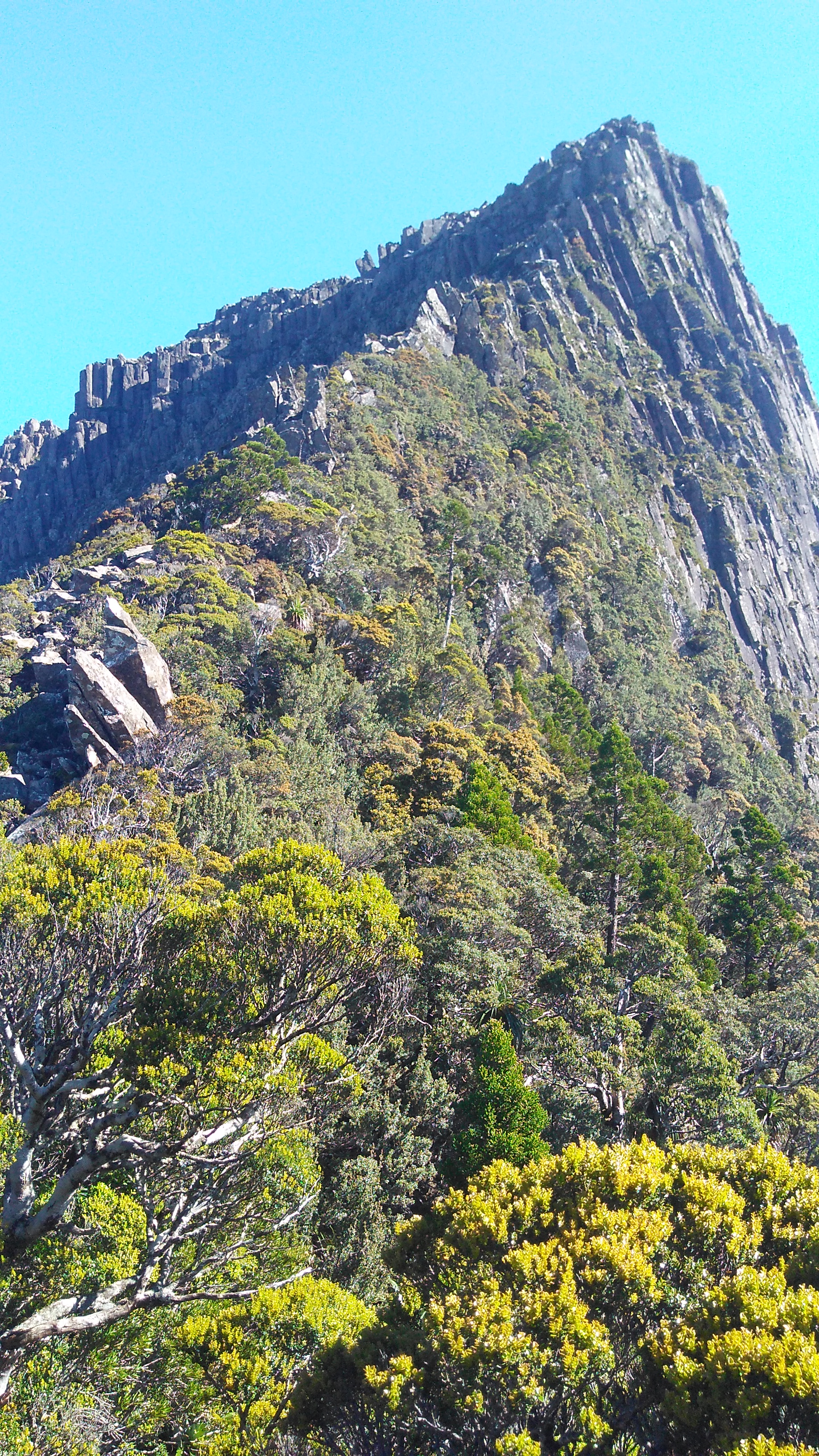 Mount Anne, beeindruckend und warnend zugleich, offenbarte uns immer weitere Details. Gleich vorweg, um die Spitze von Mount Anne zu erklimmen sollte man sehr mutig sein oder Kletterausrüstung dabei haben. Hier oben kommen leider doch immer wieder Menschen zu Tode. Wir haben das aus diesem Grunde vermieden.
