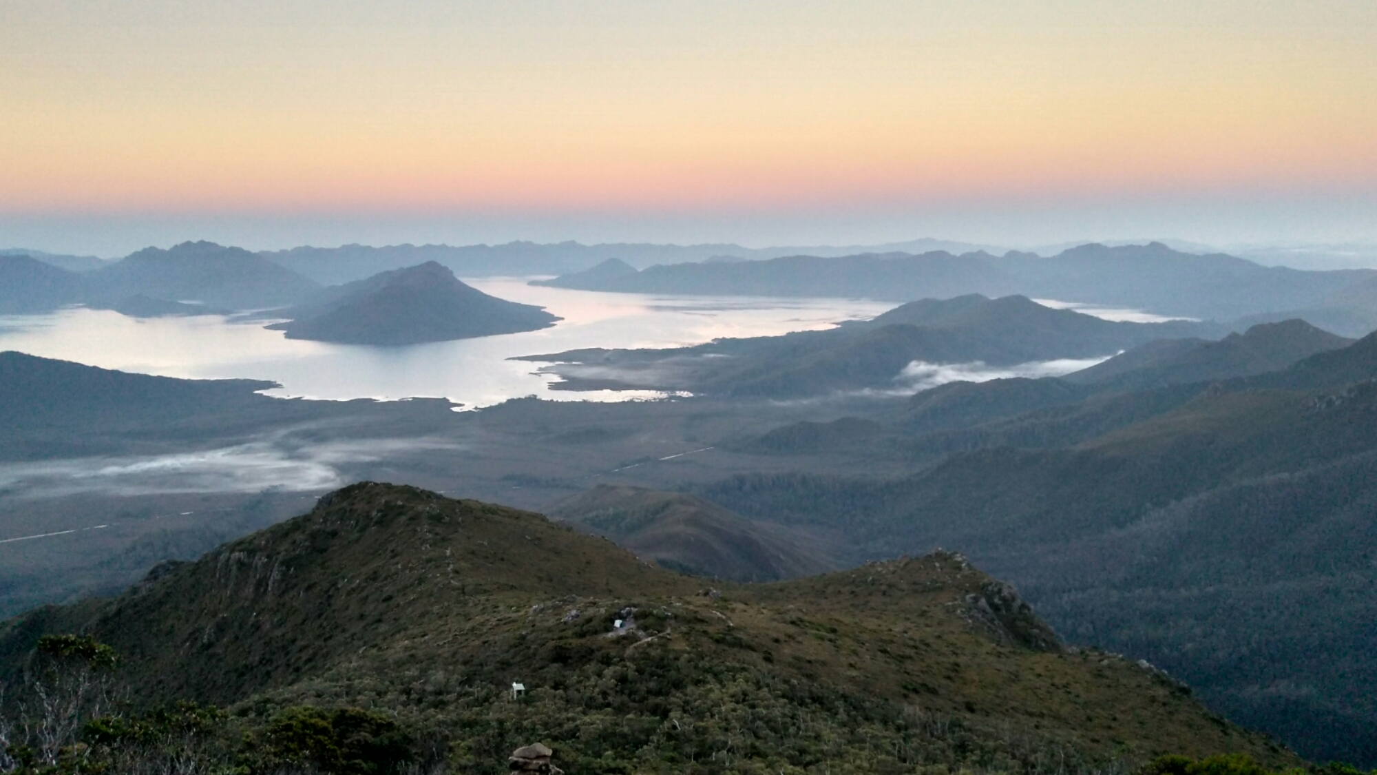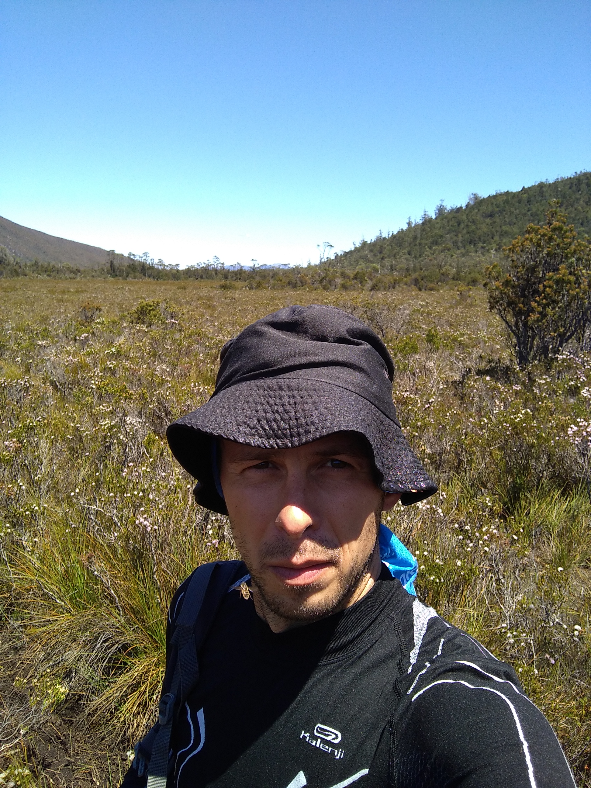 Wir fuhren also abends von Hobart aus in den Southwest Nationalpark. Nach etwa 2,5 Stunden kamen wir an unserem Basislager an, ein Parkplatz, von welchem wir den Mount Anne Circuit laufen wollten. Mein Schwager hat die kurze Nacht in seinem Toyota Landcruiser verbracht und ich in meinem Zelt auf dem Parkplatz direkt neben seinem Auto. Die Nacht war angenehm und am folgendem Tag sollte es bis zu 29 Grad geben. Je nachdem auf welcher Höhe man sich befindet, ist die Temperatur jedoch niedriger. Die Faustregel sagt aus pro 100 Meter ändert sich die Temperatur etwa um 1 Grad Celsius. Um 3 Uhr morgends klingelte der Wecker. Da kam Freude auf, nicht nur bei mir. Der Parkplatz war nämlich komplett zugeparkt und wir waren nicht die einzigsten, die hier schliefen. Ich habe mein Zelt zusammengepackt, gefrühstückt und meinen Rucksack vorbereitet. Diesmal hat in meiner Vorbereitung alles gepasst. Als wir am Mount Field West unterwegs waren, hatte ich ja meine Sandwiches im Kühlschrank vergessen. Aus Fehlern… Aber auch diesmal kam es anders als gedacht. Dies lag zum einen an den Batterien meiner Stirnlampe,welche kurz vor dem Ende waren und zum anderen an dem Schwierigkeitsgrad dieser Wanderung, welche ich unterschätzt habe. Die Belastung in jeglicher Hinsicht war für mich persönlich sehr hoch!