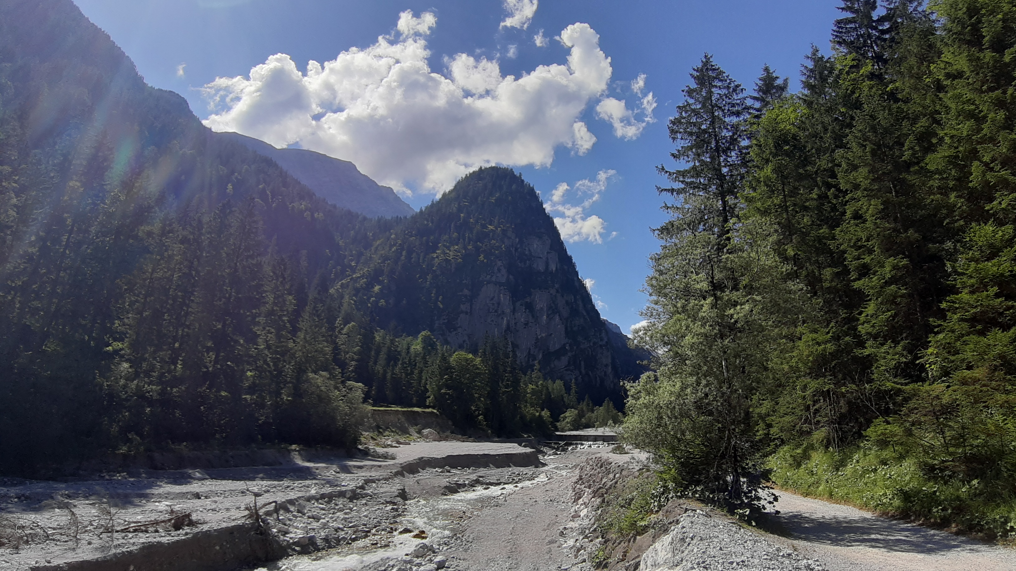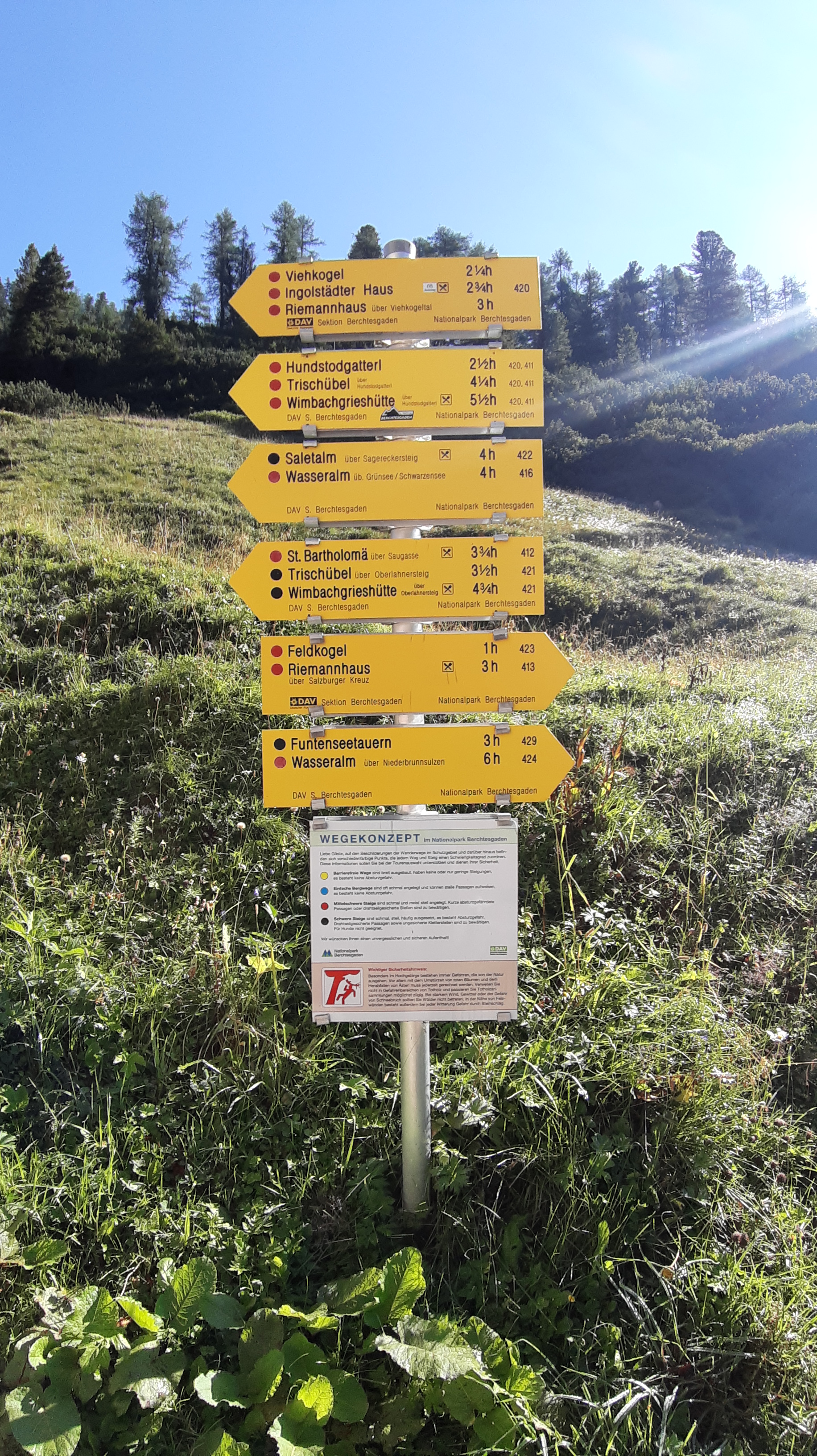 Aufgestanden um 4 Uhr morgens, gestartet um ca. 5.15 Uhr los ins Berchtesgadener Land zur Hüttentour.Die Erste Etappe war gleich knackig. Aber! Erstmal einen Parkplatz finden. Der angepeilte war hoffnungslos überfüllt. Also fuhr ich zu einer Alternative. Und fand an der Abbiegung einen Schotterparkplatz für umsonst. Ich hatte den Herrn drum gebeten, und er hat mir einen Parkplatz besorgt, der umsonst ist. Ansonsten wären es 8 Euro pro Tag. Also 32 Euro schon mal gespart. Auf dieser Etappe kamen dadurch ca. 3,5 Km Strecke zur ersten Hütte dazu. Bis zum Kärlingerhaus waren es ca. 22 Kilometer und ca. 1700 Höhenmeter. Was für eine Belastungsprobe, nachdem mir Corona so viel Kraft geraubt hatte. Es ging also vor allem eines: Bergauf.