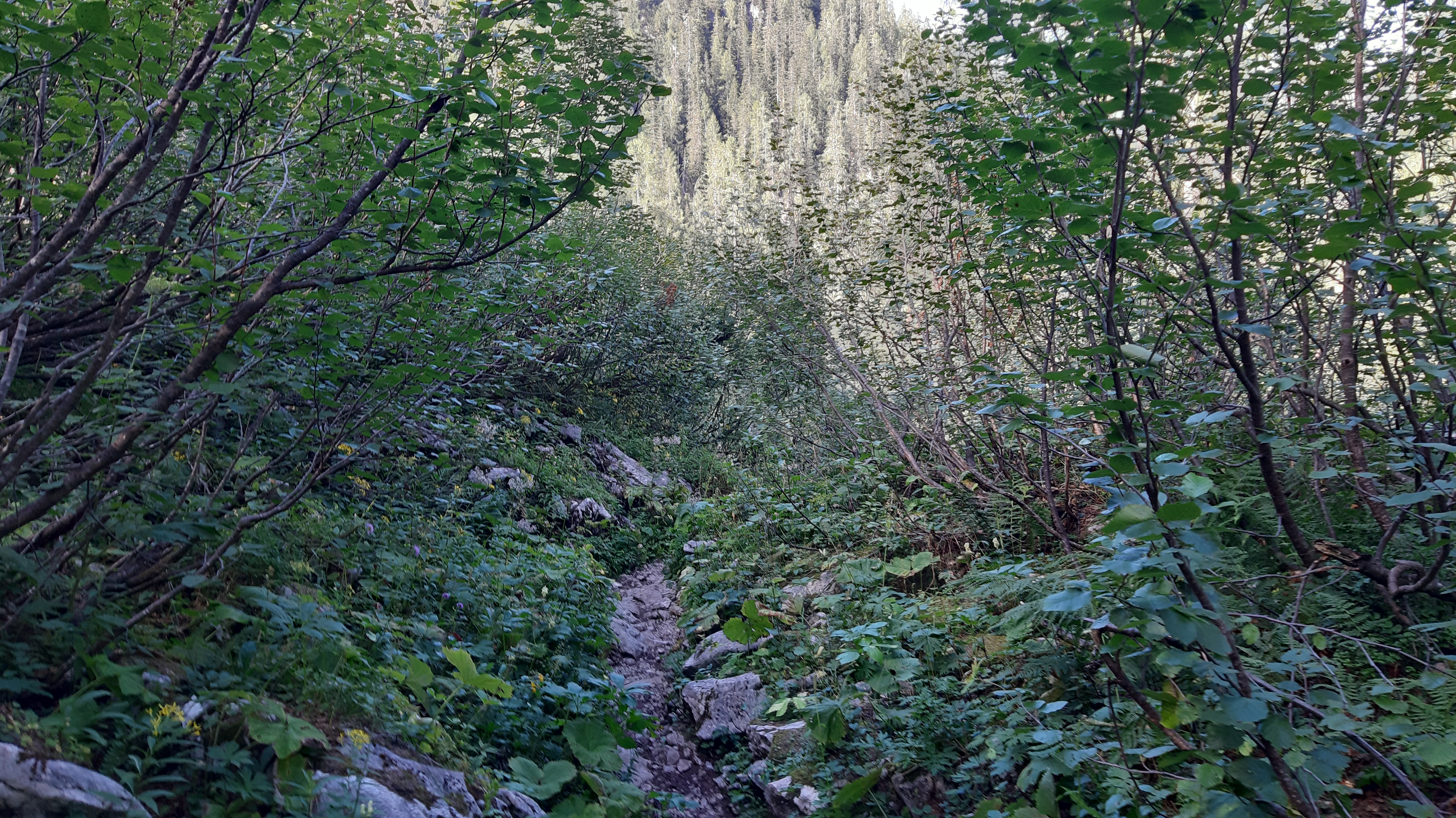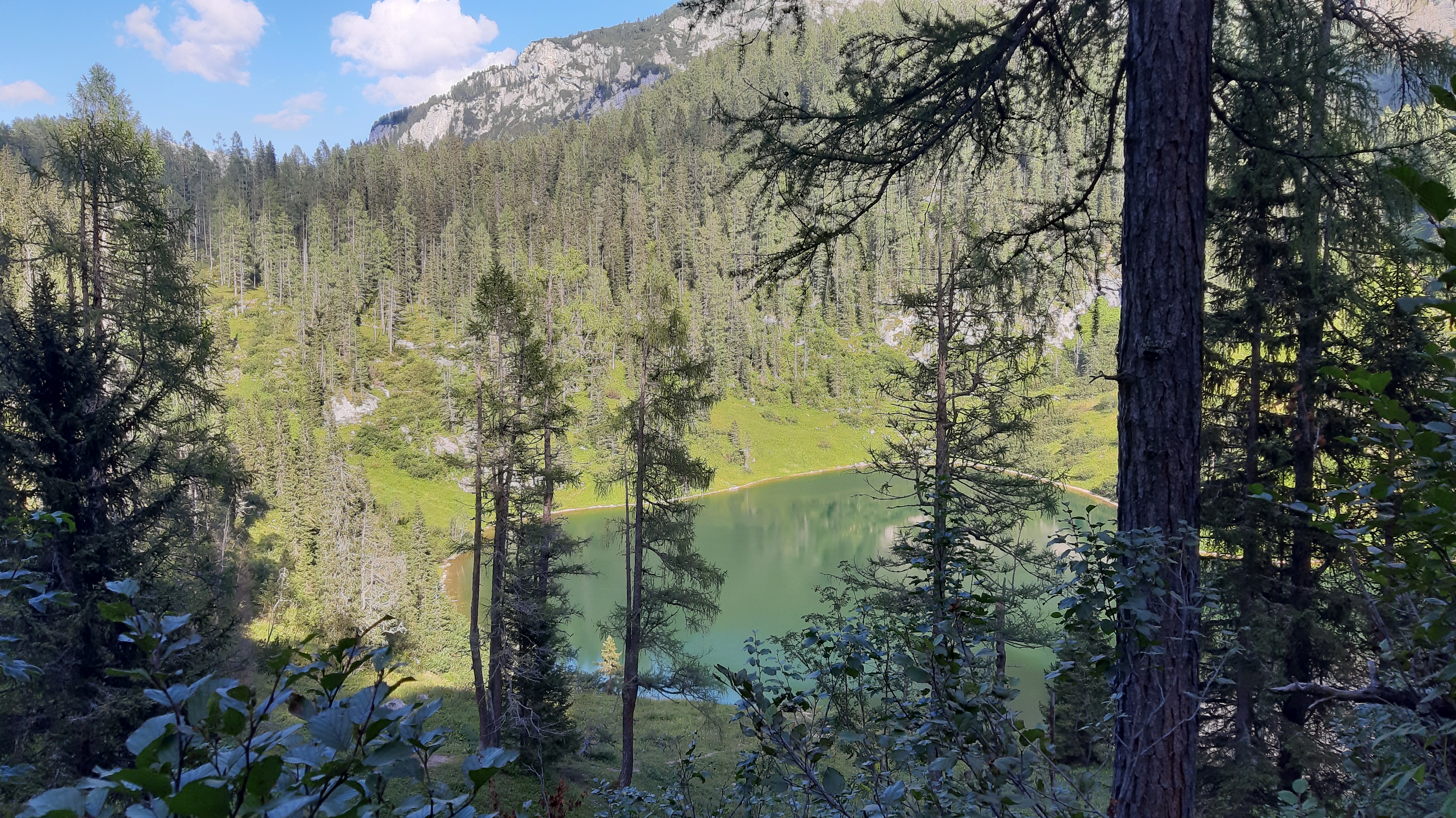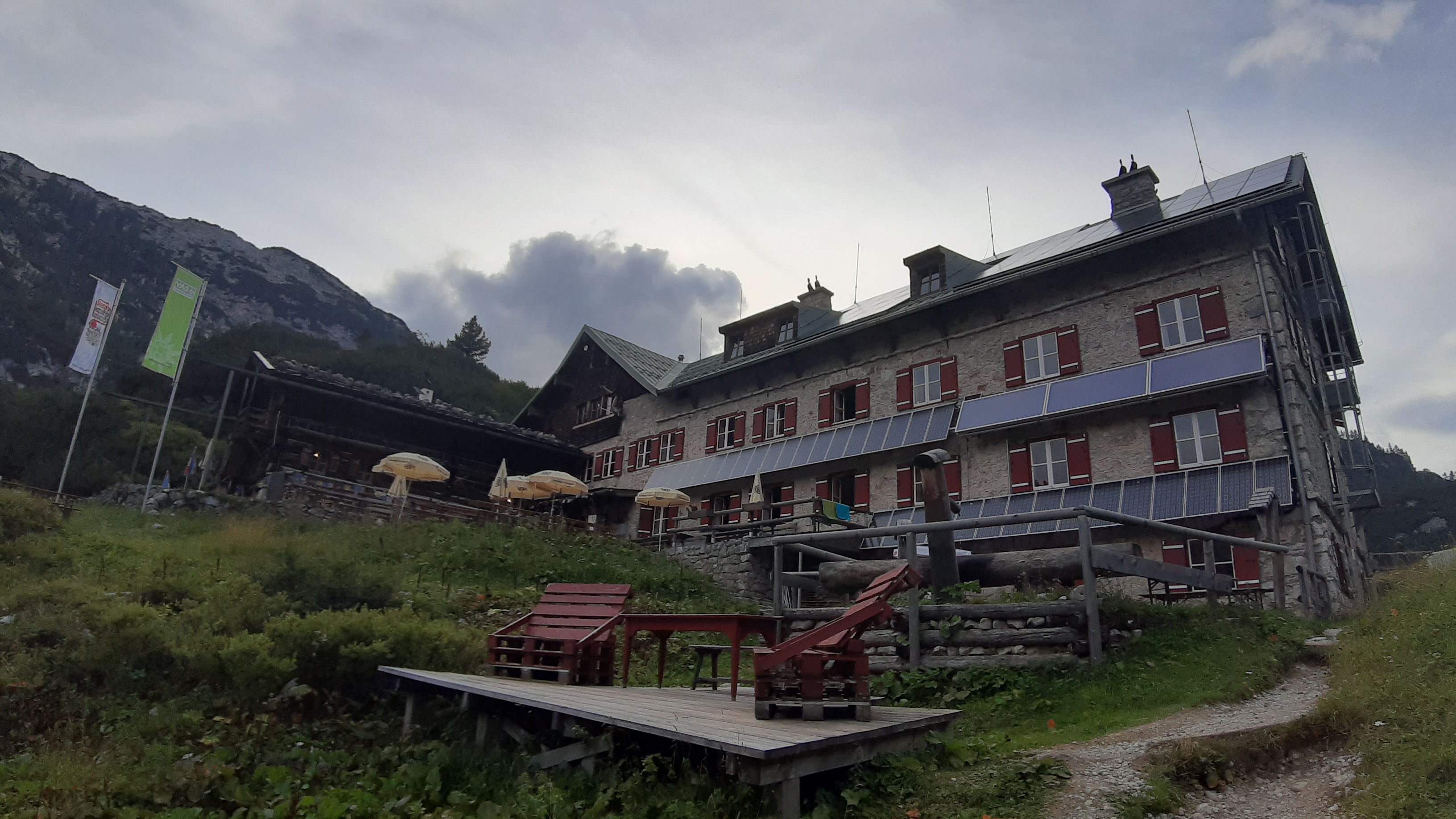 Schon bei 1000 Hm machten sich die Waaden bemerkbar. Eine kurze Beschreibung: Erst ging es durch Wald und nach und nach wurde es steiniger und weniger Wald. Ich wählte die kürzer Variante via dem Oberlahnerpass. Teilweise war dieser Seilversichert, da es sehr steil und tief den Berg hinab ging. Aber ansonsten kein Problem, etwas ausgesetzt und schwere Beine. Um 16.30 Uhr erreichte ich die Hütte und gönnte mir ein Helles Blondes. Zu essem gab es Würschdlgullasch. Das war soweit auch okey. Durch die Wanderung war ich schnell müde und bin früh ins Bett.